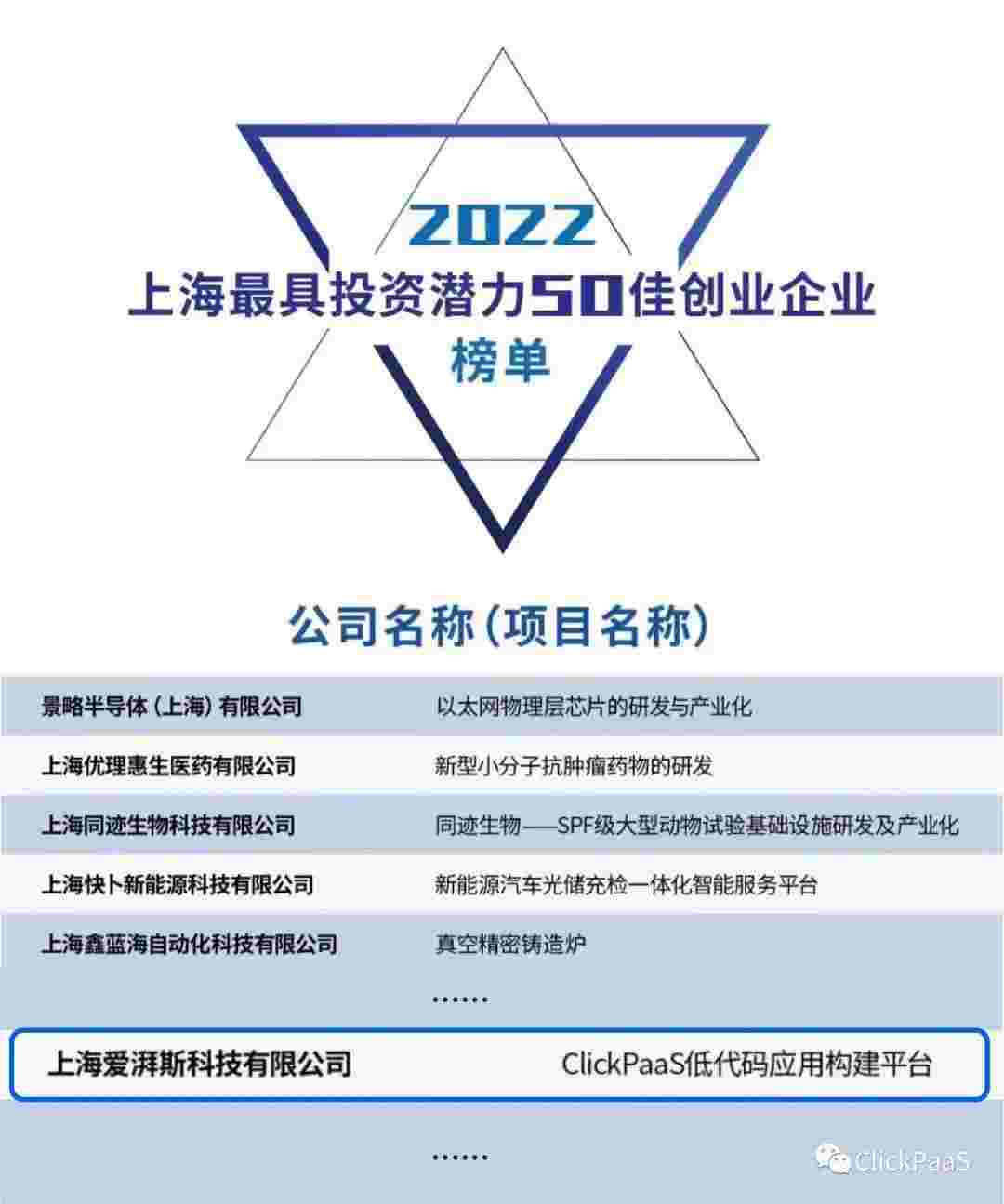 小米钱包 作为国内低代码PaaS平台的领军企业,,与120家创企入围角逐。。期间接受了来自德同资本、、领中资本等知名投资机构的10位投资人组成专家评委团的背靠背盲选。。。并最终入围“2022上海最具投资潜力50佳创业企业”榜单,,,被列入“上海市重点培育创业企业库”。。。。