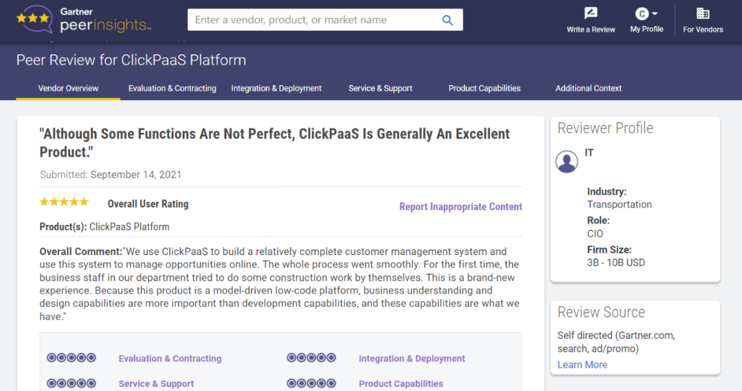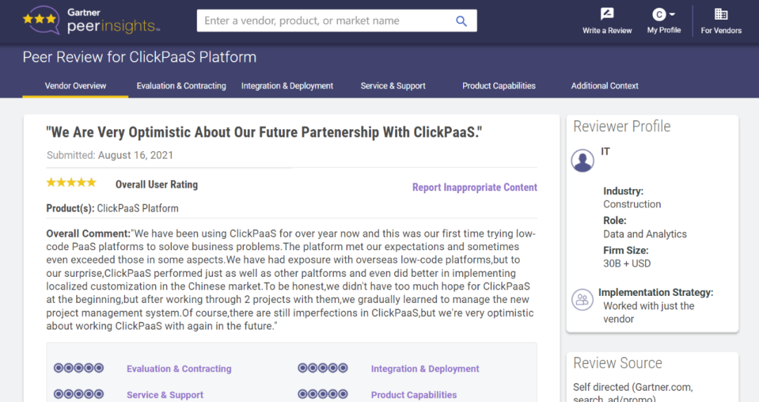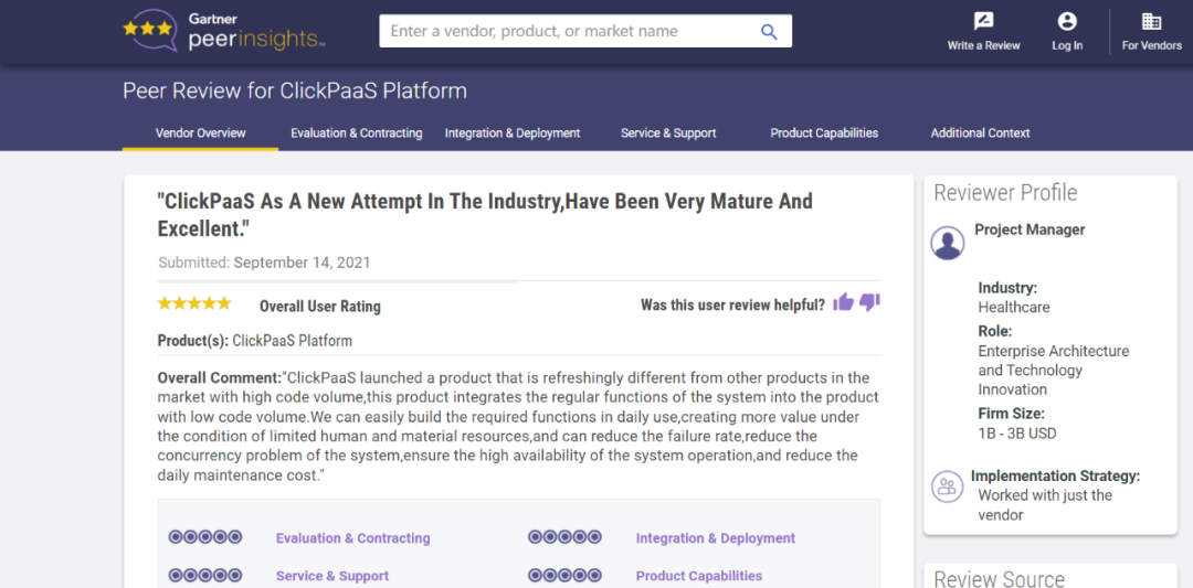 Tips::::【Peer Insights】——用户对企业IT产品和服务发布真实评价的平台。。。。目前已有355个市场,,,255,000条经过验证的评价。。每一条评价Gartner会针对参评企业营收规模及参评人员信息做验证、、、评价内容做多维核实。。。。
